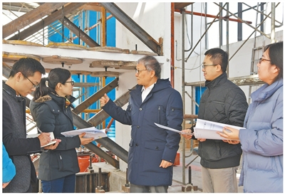 呂西林(右三)在工程現場指導學生。 |