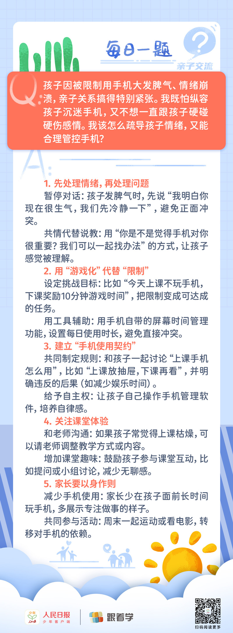 每日一題丨限制孩子使用手機導致其情緒崩潰,如何緩解親子關系?