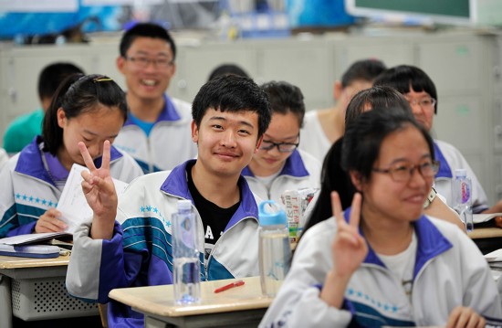 6月3日,银川一中的两名高三学生摆出胜利的手势。新华社记者 王鹏 摄