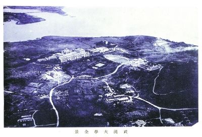 这张照片涵盖了当时武汉大学珞珈山全景,图书馆、文法理工学院、男女生宿舍、宋卿体育馆、华中水工试验所等建筑群错落有致,进入武汉大学的两条路及校园背后的东湖清晰可见。在离教学区不远处的珞珈山脚下,有数个村湾。