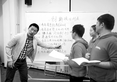 5月12日,中国海洋大学学生就业创业指导与服务中心老师乔宝刚(左一)为大学生进行创业指导。新华社记者 陈君清摄