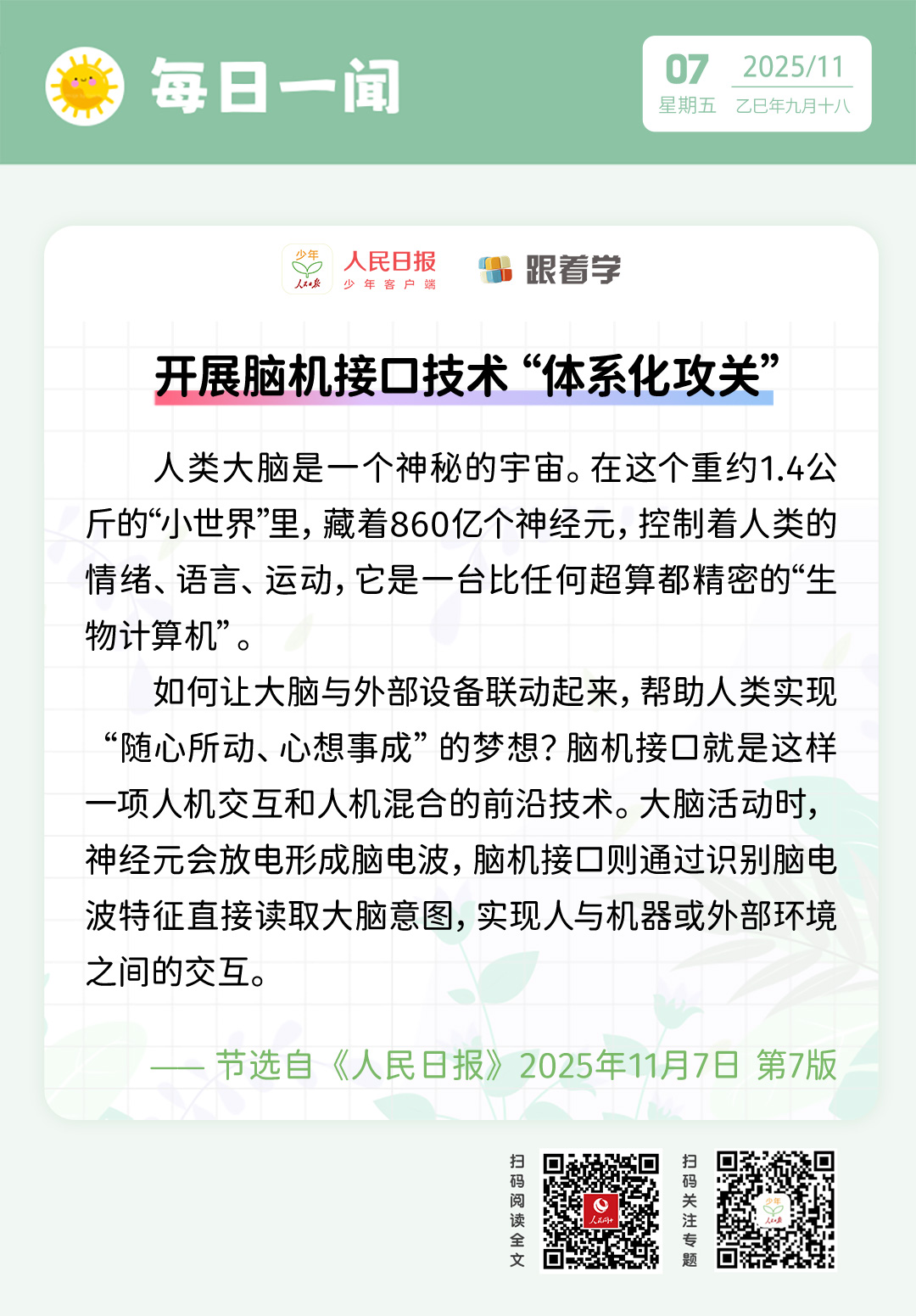 每日一闻丨开展脑机接口技术“体系化攻关”
