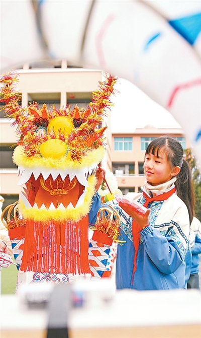 “经过几年训练,舞狮的基本动作我现在都掌握了。表演时,自己的努力被看见,我感到很开心。”五年级学生周铭轩练舞狮近3年,身体素质显著提高。