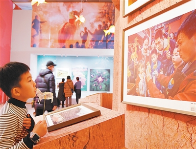 在中国非物质文化遗产馆举行的展览现场,小朋友被一幅摄影作品吸引。 |